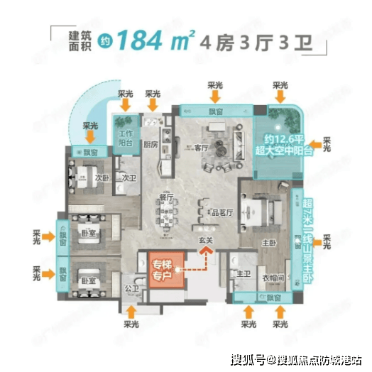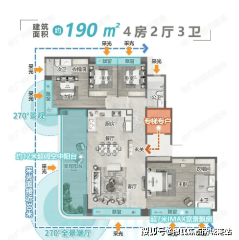 大平层户型采用LDK客餐厨一体设想,将客堂、餐厅、厨房无机融合,构成宽敞的公共勾当空间,便于家人交换取伴侣。部门户型配备双空中不雅景天井,不雅景视野宽阔,可以或许赏识到项目内部的地方花圃取外部的山景风光,实现“推窗见景”的抱负栖身形态。40%窗地比设想,让室内采光取通风结果极佳,空间通透感极强。3。25-3。5米墅级层高,相较于市场上通俗室第2。8-2。9米的层高,愈加宽敞舒服,无效提拔了栖身的幸福感。以建面约190㎡大平层户型为例,该户型为四室两厅三卫设想,结构朴直,南北通透。客堂面宽达6。8米,搭配超大不雅景阳台,采光取不雅景结果极佳;从卧为套房设想,配备卫生间、衣帽间取不雅景飘窗,了仆人的私密性取舒服度;次卧空间宽敞,可按照需求成儿童房、白叟房或书房;厨房采用U型设想,操做空间充脚,便于烹调。