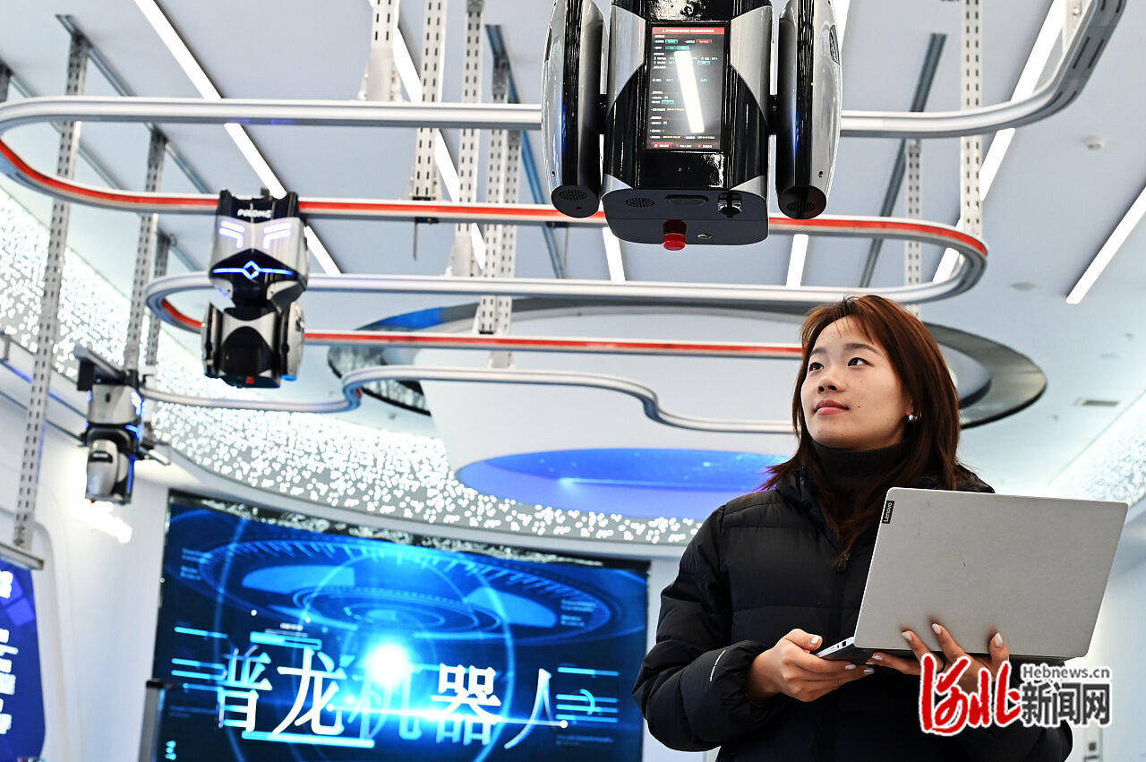 12月15日,雄安科创核心中试,普龙科技无限公司工做人员对挂轨式AI巡检机械人进行测试。日报记者 刘光昱摄?。